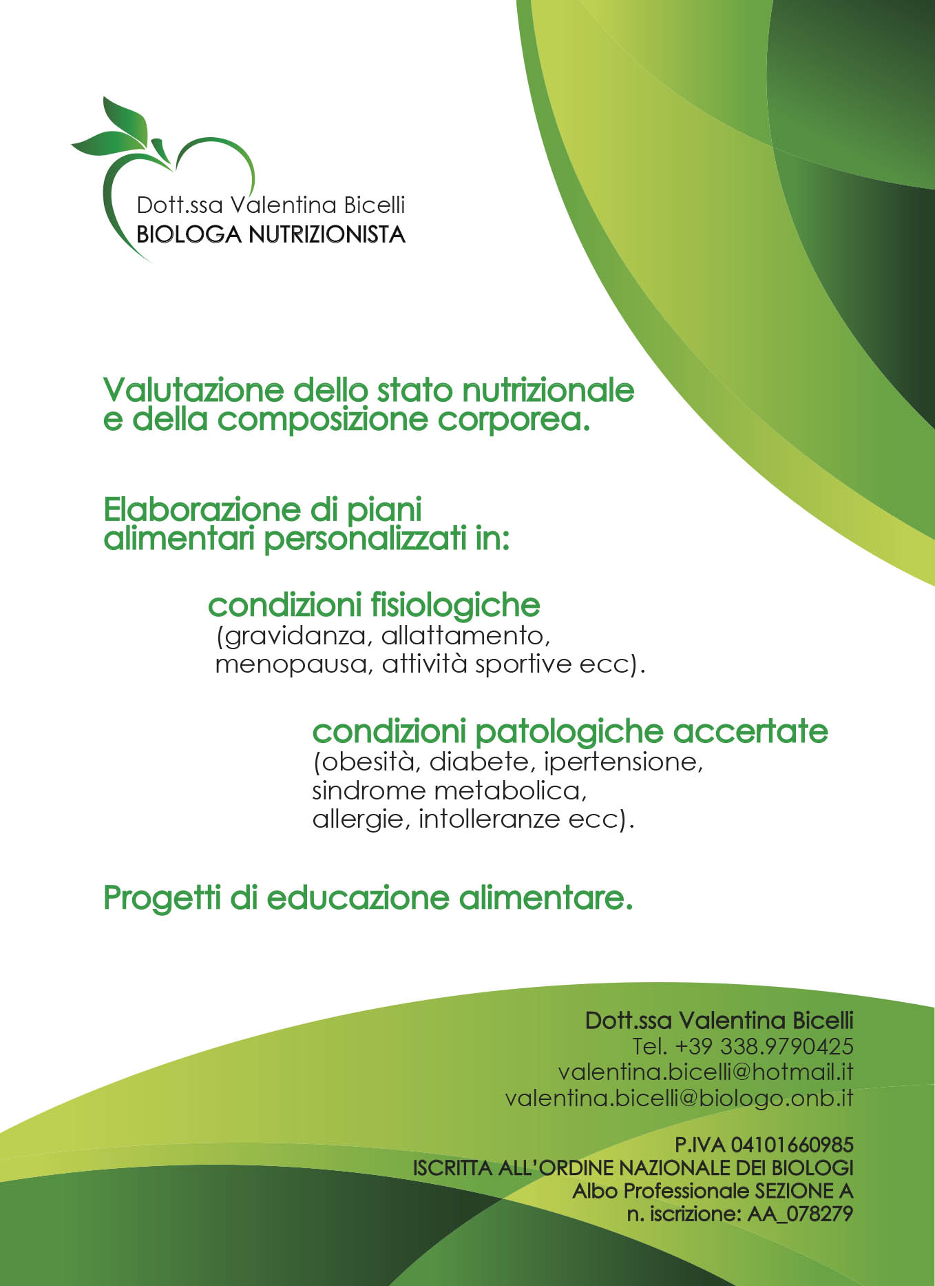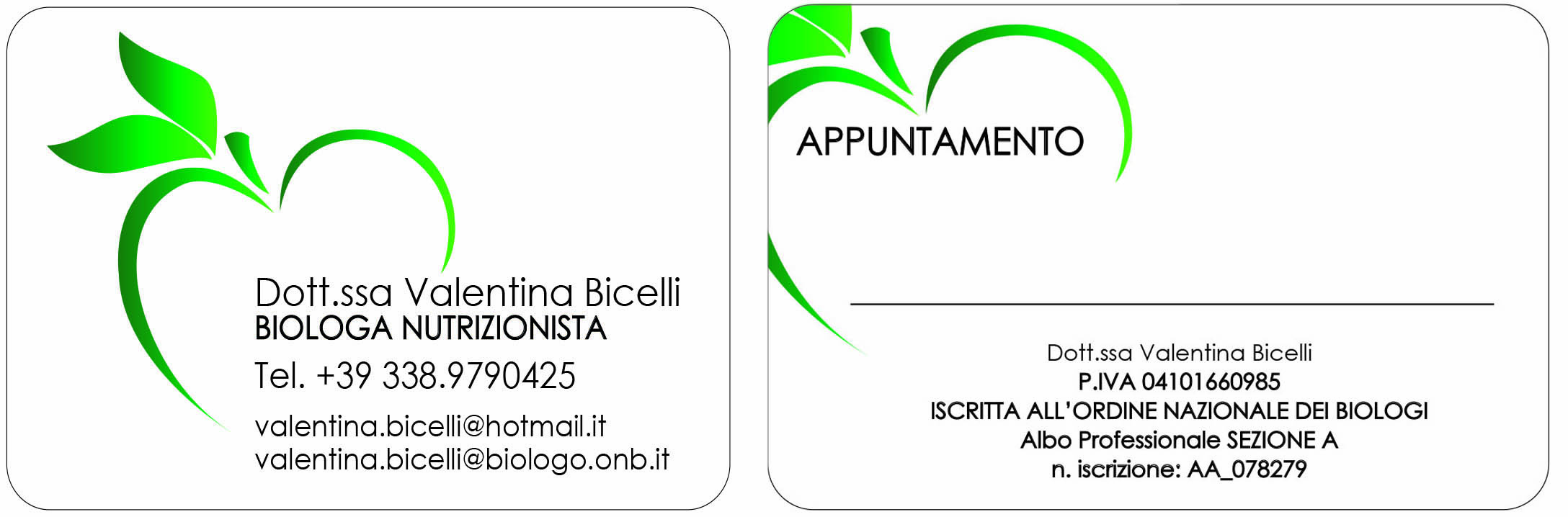 Biologa Nutrizionista libera professionista, mi ha chiesto di realizzargli il proprio logo e la graficae stamoa del proprio biglietto da visita e un volantino che potesse racchiudere informazioni sui suoi servizi.